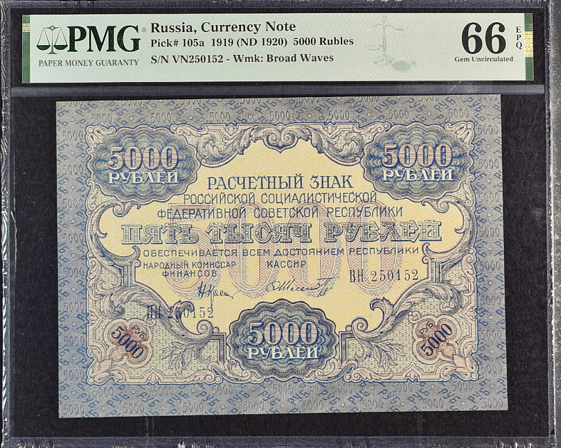 5 рублей 1923, 1-й выпуск. Государственный денежный знак РСФСР. В слабе PMG 64 EPQ