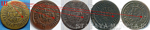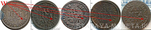 Стилистика одна и та же, учитывайте что разные номиналы - Деньга и Копейка. Был вопрос о том что нет в принципе - четких, угловатых, одного размера букв. Я более чем доходчиво показал что есть, а мнение тех кто говорит - что нет - лишь недостаток осведомлённости.