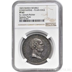 Our present example has seen various presentations in the latter half of the 20th century following its more humble beginning, passing from (allegedly) the Kobeko Collection to that of L. K. Joseph, then from Joseph to F. F. von Richer-a relative of whom presented the piece of Spassky for the aforementioned certification of authenticity. Most recently, it sold in the New York Sale (January 2004) for the hammer of $525,000 ($603,750 after the buyer's fee) and was listed in the firm's post sale press release as being the "world's most expensive non-US coin" at the time. What remains more mysterious is the piece's pre- ххххх War I history, as the collection(s) of which it was a part is unknown. The catalogers for the New York Sale speculate that it may have once been part of the collection of Count Kankrin, previously mentioned for his role as Minister of Finance at the time of Constantine's would be accession, and that of P. V. Zubov. What is certain, however, is that this example stands as one of the very few still obtainable, given the existence of three now held in public institutions and others that have seemingly fallen off the radar. As such, the ultimate prize for the most advanced cabinets dedicated to Russian numismatics, crown-sized silver issues, or great rarities in general.