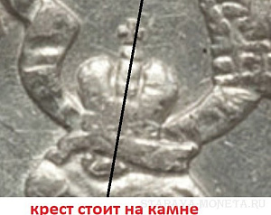 LAVOCHKIN пишет: у обсуждаемого рубля - крест не стоит на камне короны, он внизу слева и не касается камня
