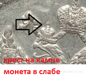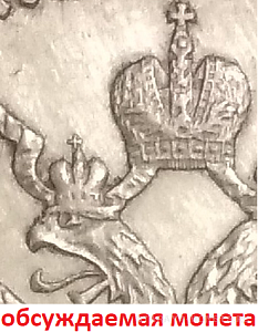 у обсуждаемого рубля - крест не стоит на камне короны, он внизу слева и не касается камня . Крест очень тонкий, отличается от крестов представленных экземпляров Согласитесь , что это разные моменты