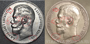 можно ли сравнение такого рубля 1897 г ** в состоянии AUNC ( но без гаст в Б и Ь) ??? или простую разновидность 1897 г ** в AUNC ?? Годно для сравнения ???