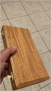 А вот повыше качеством - массив махагона, дает золотистую патину на серебре примерно через год Причем сделано с вентиляцией - без доступа кислорода патинирование происходить не будет (кислород окислитель) И да, матовый блеск это не лак - качество шлифовки такое