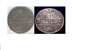 Да, пожалуй exkursant прав! Реверс совпадает один в один. Особенно интересны маленькие кляксы внутри ободка нижней короны, присутствующие на обеих монетах. Аверс, как мне кажется несколько, все-таки, отличается.