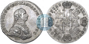 Похоже, что чеканка этого подобия новодела осуществлена на подлинном рубле Екатерины 2. Кстати, и настоящие новоделы, также чеканились, в том числе и на рублях Екатерины 2.