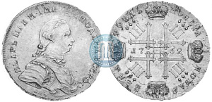 Наблюдаю за темой,дабы заинтересовала,в посте №34 я увидел копию так называемого новодела рубля 1762 года,гурт как раз гладкий,портрет работы С.Юдина монограмма на реверсе,вроде про эту разновидность идет речь.Так это пробный новодел?Нашел брата близнеца и решил объединить их для обсуждения...любопытная получается картина!Левая правда продавалась ранее с сертификатом,под видом оригинала)