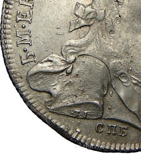 водолей пишет: ... 2. Рубли 1765 года с инициалами "СА" в подавляющем большинстве встречаются с обычным портретом (верхняя монета) и довольно редко - с "приплюснутым носом" (нижняя монета)... |