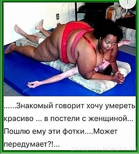 Жена приходит с сумкой, проходит в зал: — Дорогой, это вот тебе. Выкладывает из сумки пиво, воблу, раков. — А чего ты, милый, футбол не смотришь? Тебе приготовить какую-нибудь вкусняшку? Муж: — Сильно? Жена: — Не очень, милый: фара, бампер и капот.