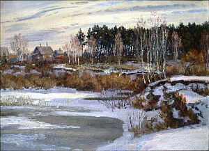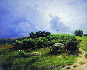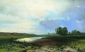Фёдор Васильев. Репин поражался на то, как он писал свои пезажи. Практически ничего с натуры, в полутёмной комнатке. Набрасывался гениальный по колориту этюд, свежий, сочный, и тут же вдруг стирался и по холсту писался новый вид. Всё по памяти, по представлению. В ранние годы ученичества пейзажный класс в России практически не писал с натуры и мало кому удавалось и с натуры добиваться такой точности в выявлении нюансов состояния природы, особенно неба