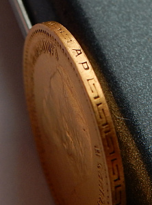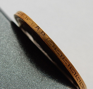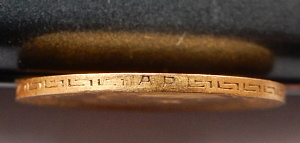 Ну да - здесь тот случай, когда надо смотреть вживую, в лупу поле вокруг букв, сами буквы и края гурта. По фото смущают замятия перехода кант/гурт. Вообще Вы ТС сами можете взять десятикратку и посмотреть эти участки , а главное поле вокруг букв сравнить с полем где вмешательство исключено.
