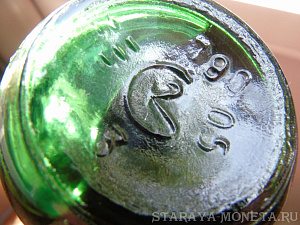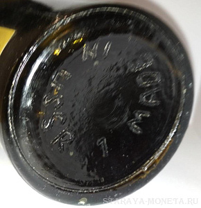 К сожалению не все фото дна где не было даты выдува сохранились,остались только фото самих бутылок.При чем на фото фольгированная бутылка явно была предназначена под винт.И такое случалось в те далекие времена.Вот пример "Наири" (выдержка 20 лет),как пример темного стекла.Этот коньяк,привезенный из Армении, был подарен моему товарищу ,армянину,его отцом на свадьбу