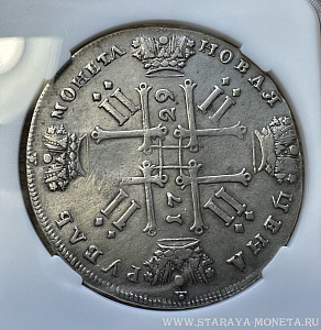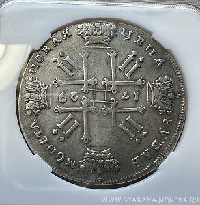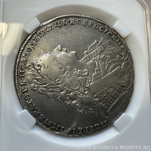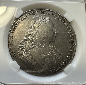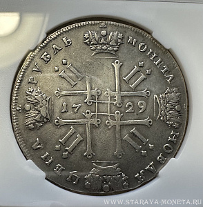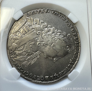 Рубль 1729 г. Портрет с орденской лентой без заклепок над обрезом рукава. В слабе ННР VF det., Предложите
