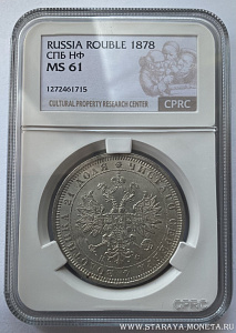 Рубль 1878 год СПБ НФ в слабе CPRC MS61, Предложите