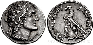 Селевкидское царство, Селевк I. AR тетрадрахма (29 мм, 17,08 грамм). 296-295 года до н.э., чекан Селевкии на Тигре. Считается, что монета была отчеканена в память битвы при Ипсе.