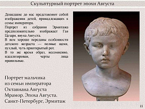 Мраморные статуи и бюсты, вообще – вещь особая, т.к. уши и носы у них отбивали регулярно, а массовые реставрации XVII – XVIII вв. иногда делались почти наобум. Поэтому римские монетные изображения (особенно, сделанные до конца III в.) – самые бесспорные и вполне неплохо дают представление о характерных, устойчивых чертах лица, профиле изображаемого, да и о его внешности вообще.
