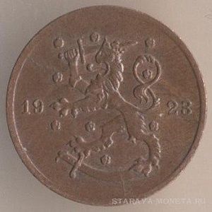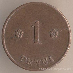Финляндская Республика. 1 пенни 1923 года, бронза, масса - 1 грамм., диаметр - 14 мм, тираж - 990000 экземпляров. Гравёр: Исак Густав Санделл. Монетный двор Хельсинки. Чеканились в 1919-1924 годах.