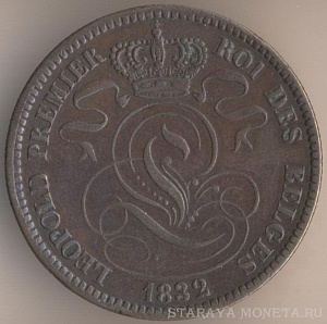 5 сантимов 1832 года, медь, масса - 20 граммов, диаметр - 32 мм, тираж - 993308 экземпляров. Гравёр: Жозеф-Пьер Брэмт. Чеканились в 1832-33, 1835, 1838, 1841, 1847-49 и 1855-56 годах.