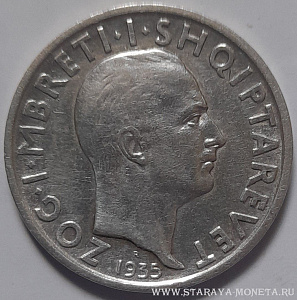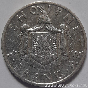 Первые монеты независимой Албании поступили в обращение в феврале 1926 года. Албанский франк равнялся 5 лекам, 100 золотым киндарам или 500 киндарам лека. Он имел золотое обеспечении - 1 франк соответствовал 0,290323 грамма золота 999-й пробы. Албанский франк был конвертируемой валютой и к 1934 году обменивался на доллар США по курсу 3,06 франка за 1 доллар. После оккупации Албании итальянцами в 1939 году франк привязали к лире по курсу 6,25 лиры за 1 франк, а в 1943 году, когда контроль над страной перешёл к немцам - к рейхсмарке в соотношении 81 пфенниг за 1 франк.