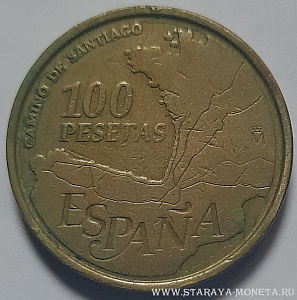 Томич пишет: Иногда монета содержит в себе скрытый, не сразу понятный смысл, расшифровка которого требует наличия определённой дополнительной информации. В качестве примера можно привести испанскую монету достоинством 100 песет, отчеканенную в 1993 году. На ней изображены часть Франции и Испании, испещрённые некими неровными хаотичными линиями...