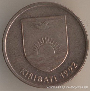 В 1992 году Королевский монетный двор (г. Ллантрисант, Великобритания) отчеканил по заявке Республики Кирибати партию монет достоинством 1 и 2 цента. Ранее такие монеты уже выпускались в 1979 году единственным тиражом в 90000 и 25000 экземпляров соответственно (также было выпущено небольшое количество монет в грейде proof, но они в обороте не участвовали). Население Кирибати невелико - всего 115000 человек, поэтому монет вполне хватало, тем более, что законным платёжным средством признавался и австралийский доллар. Но в 1991 году Австралия вывела из обращения монеты номиналом 1 и 2 цента, в виду чего Республика Кирибати рисковала остаться без монет мелкого достоинства (например, в силу того, что их постоянно в качестве сувениров вывозили туристы). Поэтому и было решено впервые с 1979 года выпустить новый тираж одно- и двухцентовиков. Для удешевления процесса изготовления бронзу в них заменили на плакированную бронзой сталь
