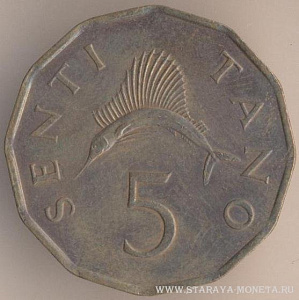 На танзанийской монете 5 сенти имеется надпись "RAIS WA KWANZA", расположенная под профилем изображённого на ней мужчины. Портрет принадлежит Джулиусу Ньерере (возглавлял страну в 1964-1985 годах), а надпись, выполненная на языке суахили, означает "ПЕРВЫЙ ПРЕЗИДЕНТ". Номинал монеты также указан на суахили.