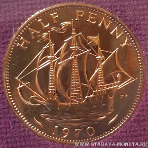 Несмотря на то обстоятельство, что английские монеты достоинством полпенни додесятичного типа были выведены из обращения 1 августа 1969 года, в 1970 году Королевский монетный двор (г. Ллантрисант, Великобритания) выпустил 750400 экземпляров в грейде proof в составе специальных памятных наборов. На момент выпуска эти полпенни уже не считались законным платёжным средством.