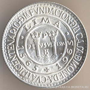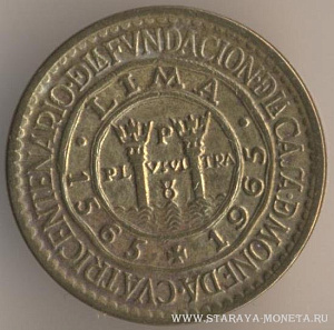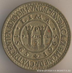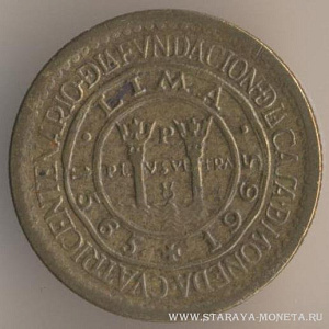 В 1965 году Республика Перу отмечала Четырёхсотлетие создания монетного двора города Лима (столица государства). В честь данного события была выпущена серия из восьми монет номиналом 5, 10, 25 сентаво, 1/2, 1, 20, 50 и 100 солей, реверс которых украсила копия первой перуанской монеты достоинством 8 реалов, отчеканенной в 1560-х годах.