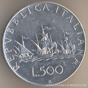 На итальянской серебряной монете достоинством 500 лир, изображающей плавание каравелл Христофора Колумба, допущена логическая ошибка - флаги на мачтах развиваются против ветра и направления движения судов, что противоречит законам физики.