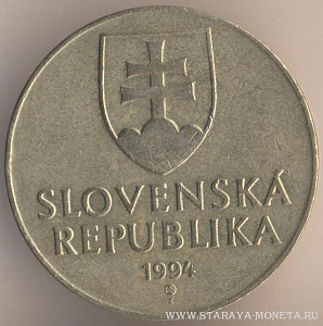 Первой монетой (Второй) Словацкой Республики, поступившей в обращение после раздела Чехословакии на независимые Чехию и Словакию, стали 10 крон, отчеканенные на Кремницком монетном дворе и пущенные в оборот 8 февраля 1993 года. Они обращались до 17 января 2009 года и были демонетизированы в связи со вступлением Словакии в евро-зону.