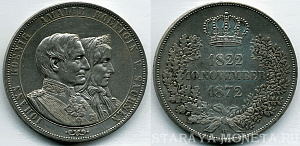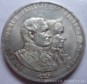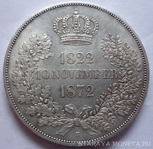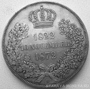 Не знаю, устроит ли Вас картинка из каталога 1974 г. (Norbert Thun "Deutsche Taler, Doppelgulden, Doppeltaler von 1800-1871" . После Ваших исследований он, возможно, утратит свою актуальность... Варианты по гурту для этой монеты описаны в более свежем каталоге - Helmut Kahnt. Die deutschen Silbermünzen 1800-1872 vom Halbtaler bis zum Doppeltaler. 2000. Самый редкий вариант - с ошибкой. Продавался здесь: http://www.mcsearch.info/search.html?search=similar%3A503620#18 Есть ещё довольно редкий без надписи. Ваш обычный. Для Германии тираж памятной монеты 40-50000 - весьма большой, там и в 10 раз меньше редкостью не считается, это не Россия. Но монета эта примечательна, та к как является последним двойным германским талером.