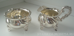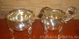 Молочник+сахарница.Серебро 835 проба.Швеция. Вес 145 грамма.Блиц.