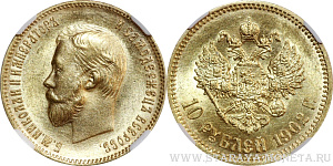 10 рублей 1902 года АР MS63 в слабе ННР. Царский чекан. 2 лш, Предложите