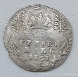 Гривенник 1751. Оценка