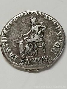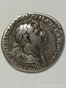 Денарий Траяна, датированный примерно осень 116-август 117 года. Появление Salus на монете не случайно, здоровье императора вызывала тревогу, трудности восточной военной кампании очень пошатнули его.