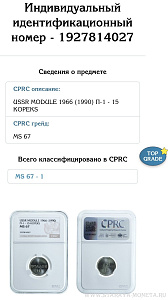 Эталоны : 10, 15, 50 копеек , 1 рубль 1966 . П-1. П-2. Н-1. Н-2. В слабах CPRC- 16 шт. Топ грейды ., Предпродажная оценка