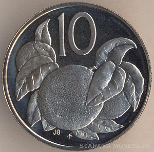 10 тене (центов) 1973 года, медно-никелевый сплав, proof, масса - 5,65 грамма, диаметр - 23,6 мм, тираж - 13000 экземпляров. Гравёры: Арнольд Мэйчин (аверс - портрет королевы Елизаветы II ) и Джордж Джеймс Берри (реверс). Чеканились в 1972-77 и 1983 годах.