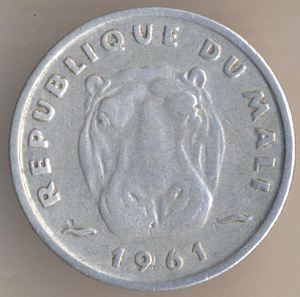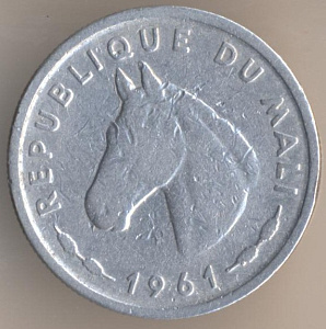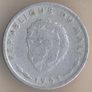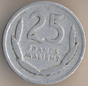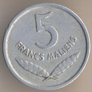 Теперь перейдём к истории малийского денежного обращения. После провозглашения независимости от Франции 22 сентября 1960 года валютой Республики Мали стал франк КФА или африканский франк, обращавшийся также в ряде других африканских стран. 1 июля 1962 года в обращение вводится малийский франк, причём, на монетах стояла дата "1961". Он был привязан к курсу франка КФА в соотношении 1 к 1. В феврале 1967 года малийский франк был переориентирован на французский, было подписано соглашение о свободном обмене валют, однако уже летом того же года курс малийского франка упал на 50% и стал обмениваться в соотношении 100 малийских франков за 1 французский. Обмен на франк КФА осуществлялся по курсу 1 франк КФА = 2 малийских франка. Наконец, 1 июня 1984 года франк КФА был официально провозглашён национальной валютой. Обмен для населения производился по курсу 2 малийских франка за 1 франк КФА.