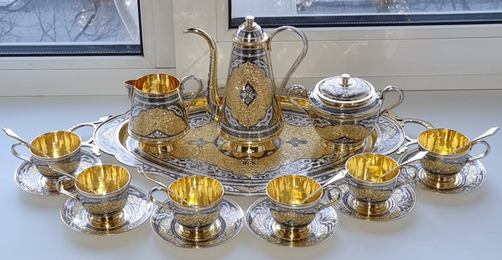 Кофейная пара.Серебро 875 пробы.Штихель.Чернь.